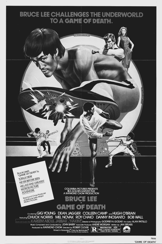 En vez de realizar un análisis integro, me voy a centrar en hablar de la película más polémica de Lee, hablo de Game of Death (1978, Robert Clouse). Estrenada después de cinco años de la muerte del maestro más conocido de las artes marciales, supone su segunda cinta póstuma, ya que falleció antes del estreno de Enter the dragon (1973, Robert Clouse), pero la primera que no acabó. Juego con la muerte, en su título español, es una cinta inacabada que se construye de piezas sueltas de sus cintas previas. Lo único nuevo para un espectador de su cine es la parte final, una suerte de combates filmados como ensayos de lo que sería su nuevo filme. Probablemente ahora no estaréis entendiendo nada, a no ser que hayáis visto la cinta, así que vamos paso a paso.